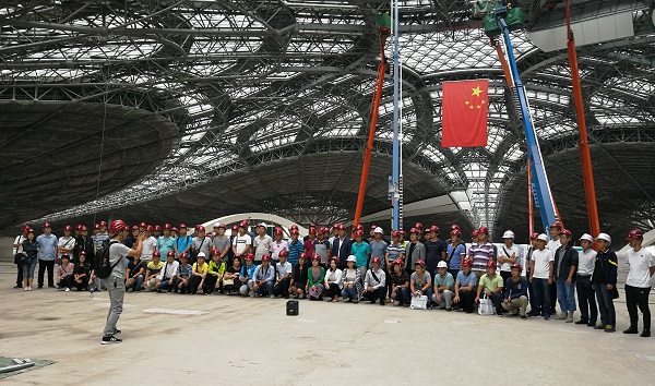 在新機場項目部辦公室,百余位工程測量領(lǐng)域?qū)<艺J(rèn)真聆聽了工作人員對新機場航站樓設(shè)計方案、臨空經(jīng)濟(jì)區(qū)規(guī)劃、區(qū)域綜合管控、智慧機場、質(zhì)量安全目標(biāo)及管控體系機制等情況的講解,觀看了"北京大興國際機場"的視頻介紹。隨后,集體乘車到新機場建設(shè)工地實地參觀,宏偉的航站樓已經(jīng)拔地而起,并已完成封頂封圍,正在進(jìn)行內(nèi)部裝修及機電設(shè)備安裝,現(xiàn)場通過科學(xué)的工程管理經(jīng)驗、先進(jìn)的施工技術(shù)、嚴(yán)格的安全生產(chǎn)標(biāo)準(zhǔn),將新機場項目打造成“精品工程、樣板工程、平安工程、廉潔工程”。
