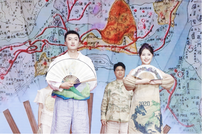《地圖夏語》節(jié)目將地圖元素與國家級非物質(zhì)文化遺產(chǎn)—夏布相結(jié)合,選取了從清代到現(xiàn)代的10幅地圖,并以夏布為原材料設(shè)計成地圖文化服飾,輔以地圖折扇、團扇、絲巾、編織袋以及萬州木雕地圖模型,實現(xiàn)了地圖與藝術(shù)完美融合,充分彰顯了地圖文化的獨特韻味。同時,節(jié)目還結(jié)合測繪地理信息工作特色改編了人氣歌曲《驕傲的少年》的歌詞,作為走秀的背景音樂,將測繪工作披星戴月、櫛風(fēng)沐雨的特點,以及測繪工作者忠誠事業(yè)、艱苦奮斗、勇于開拓、精益求精的精神品質(zhì)展現(xiàn)得淋漓盡致。