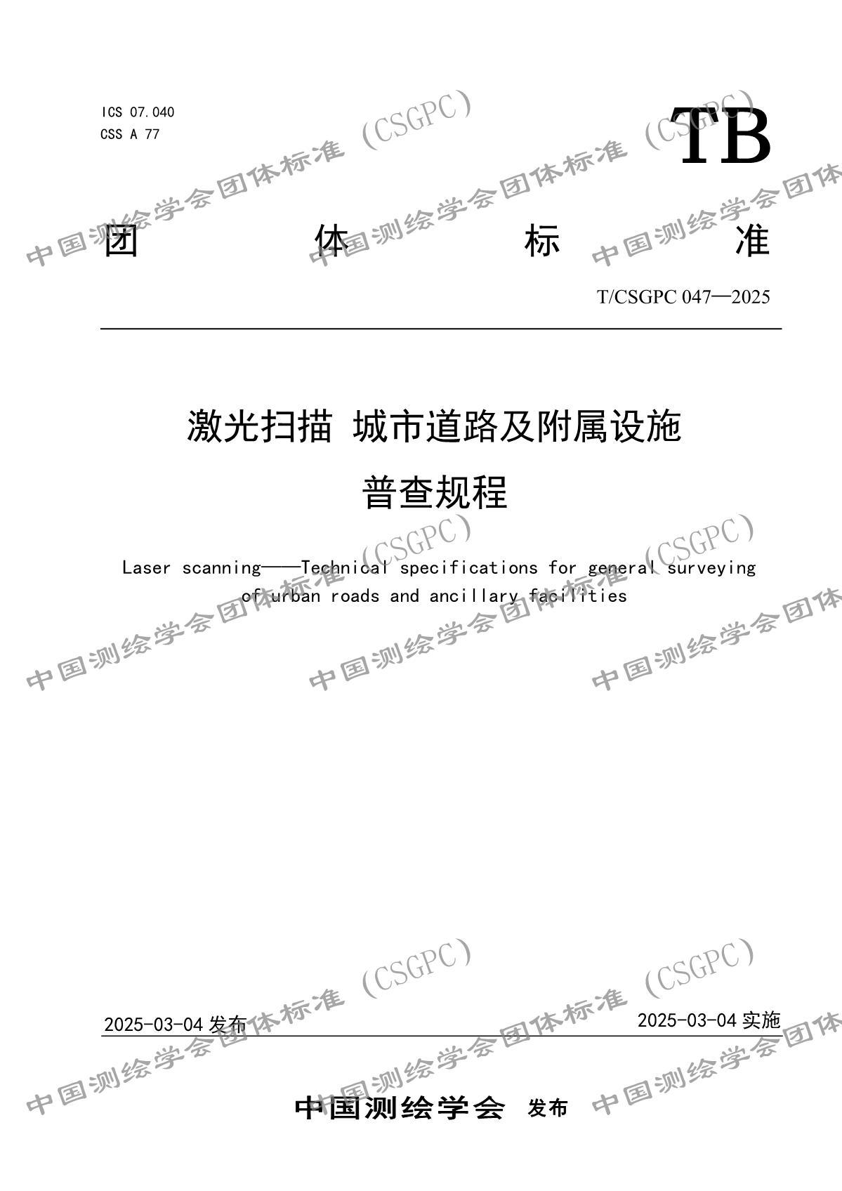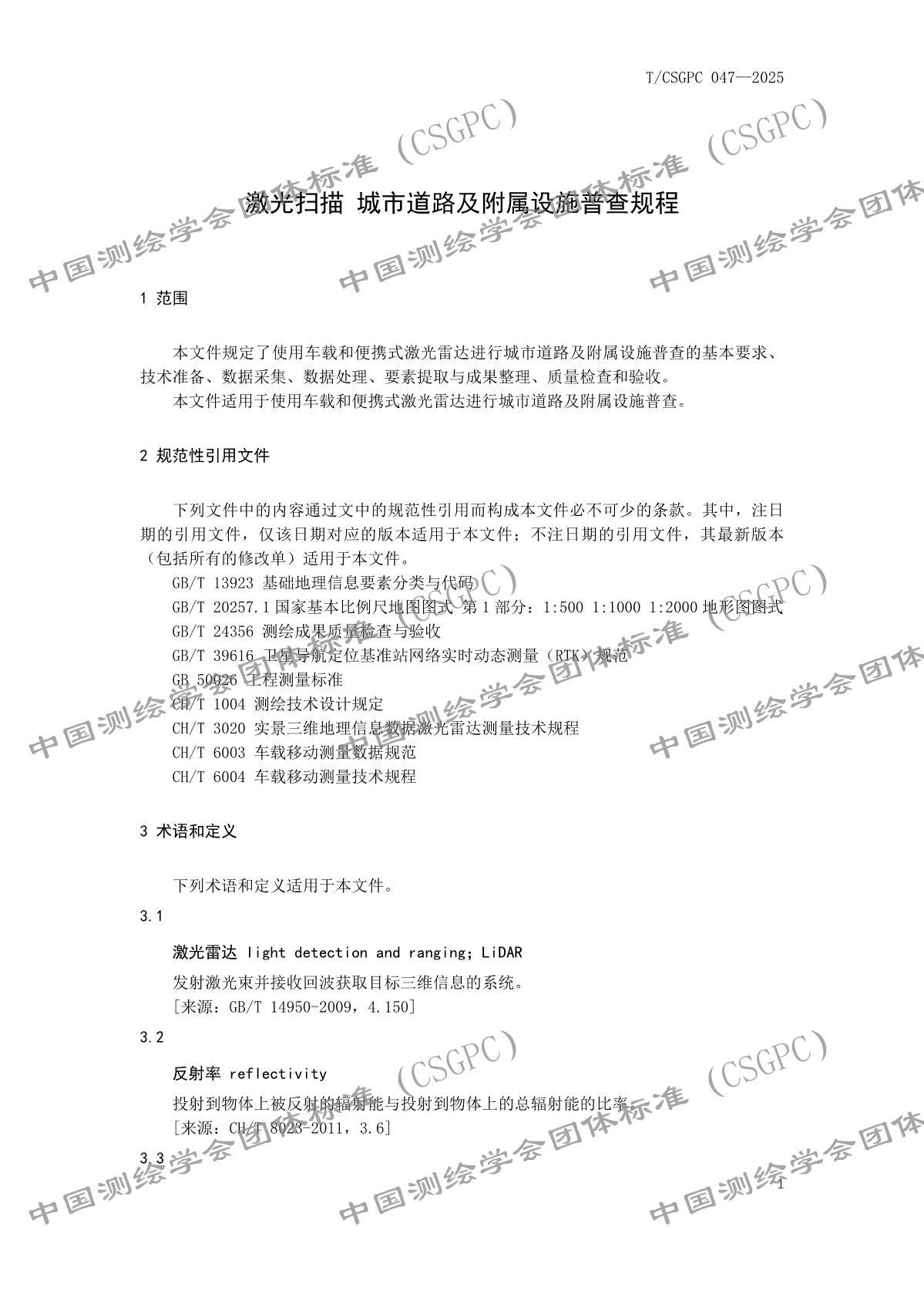 《激光掃描 城市道路及附屬設(shè)施普查規(guī)程》TCSGPC 047—2025