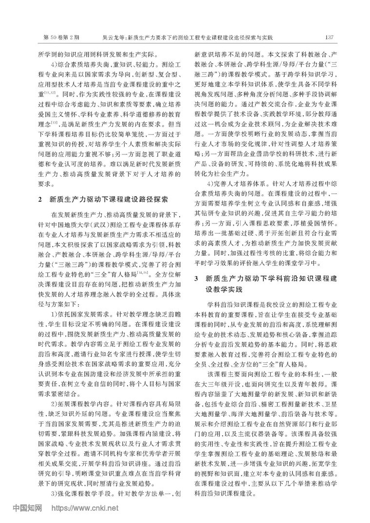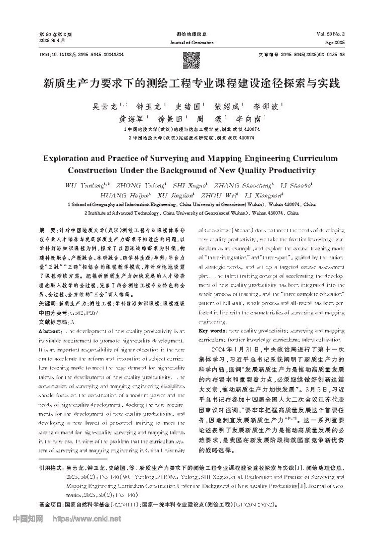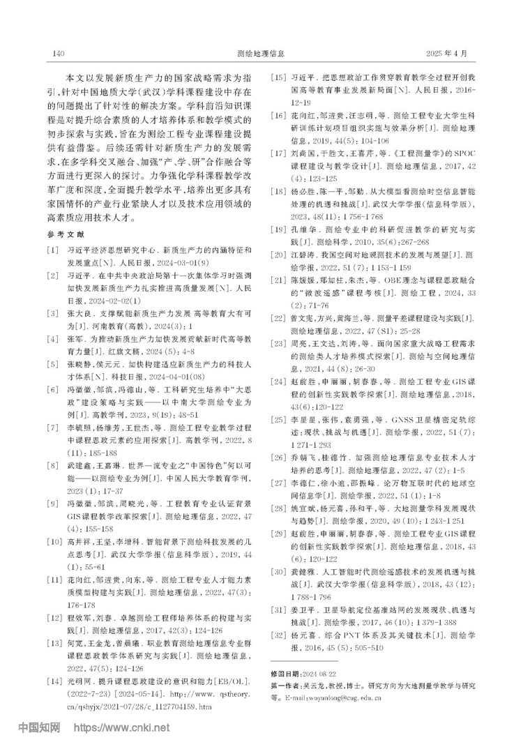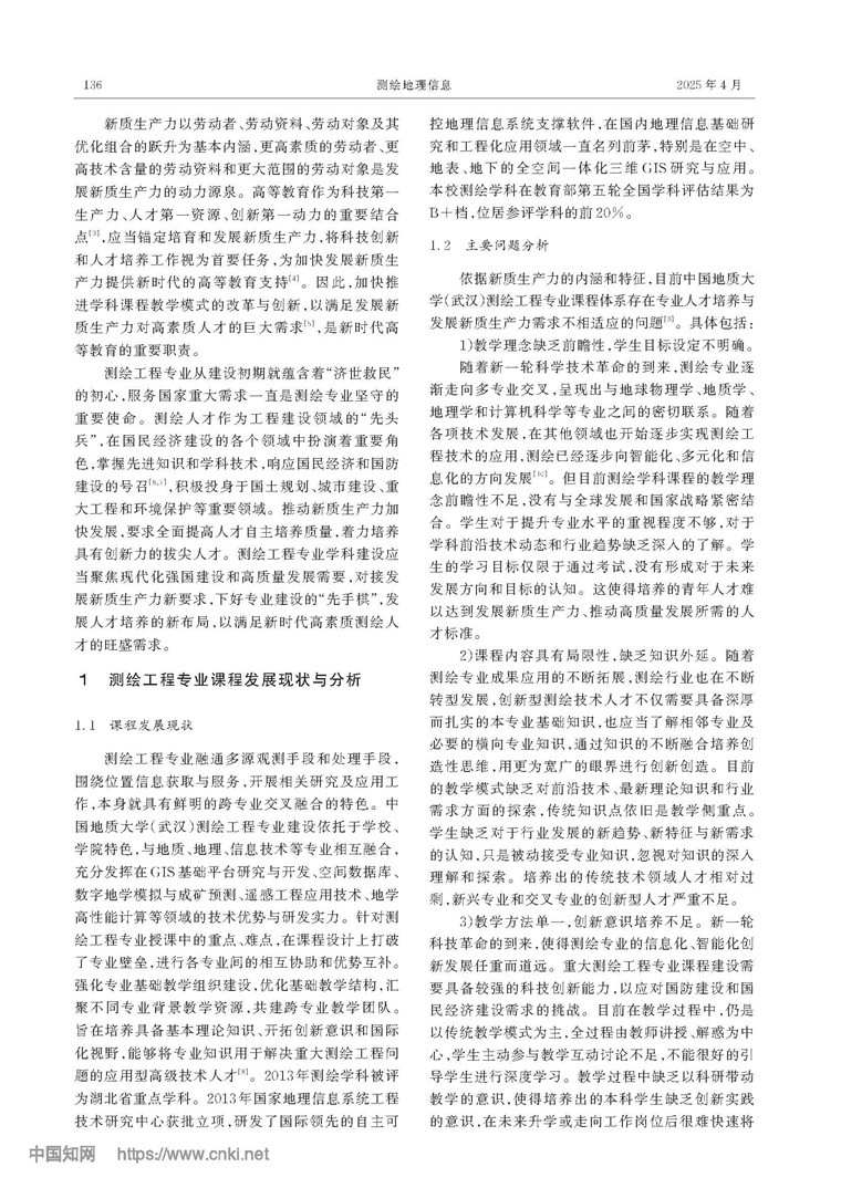 新質(zhì)生產(chǎn)力要求下的測(cè)繪工程專(zhuān)業(yè)課程建設(shè)途徑探索與實(shí)踐