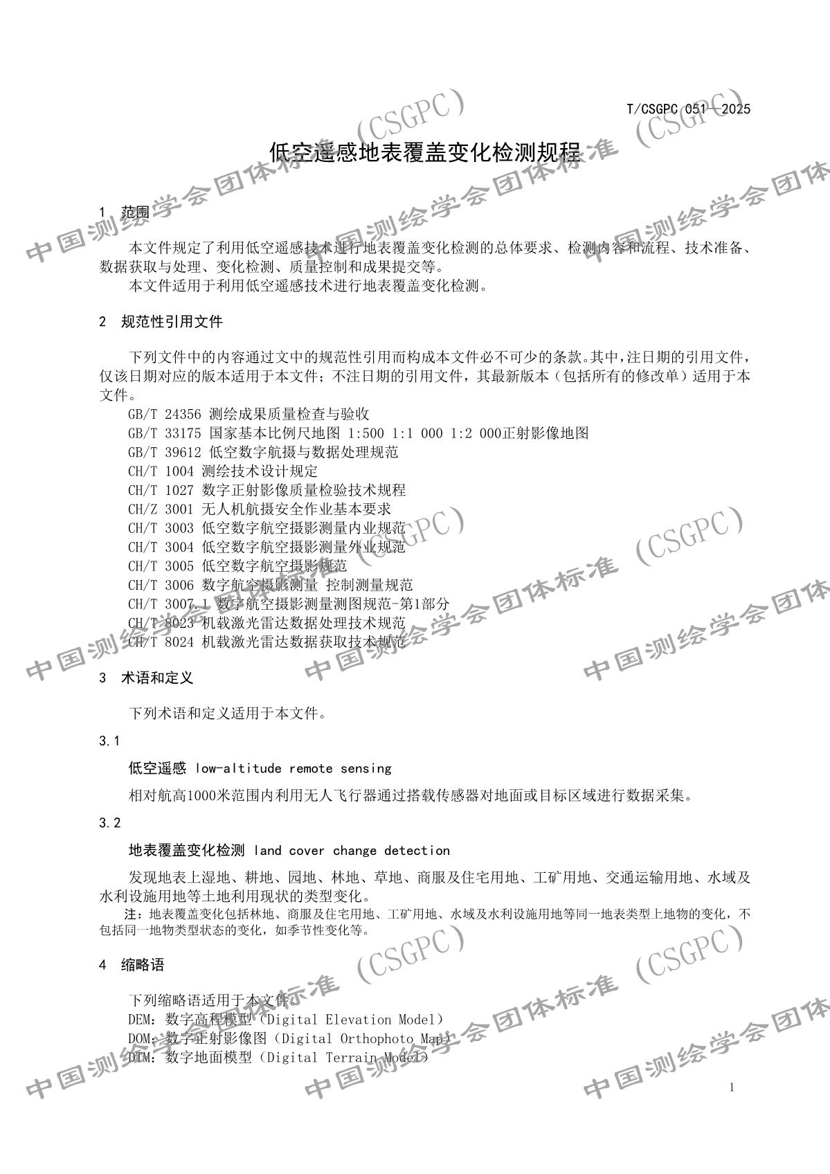 《低空遙感地表覆蓋變化檢測規(guī)程》(T/CSGPC 051-2025)