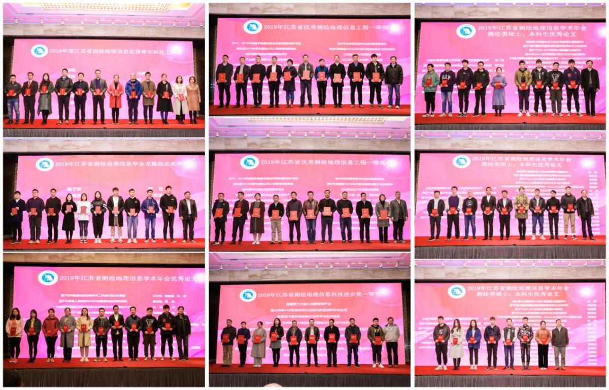 會(huì)上對(duì)江蘇省“2019年度測(cè)繪地理信息科技進(jìn)步獎(jiǎng)”、“2019年度優(yōu)秀測(cè)繪地理信息工程獎(jiǎng)”、“2019年度年會(huì)優(yōu)秀論文獎(jiǎng)”、“2019年度龍騰勵(lì)志獎(jiǎng)學(xué)金”、“2019年度測(cè)繪類(lèi)優(yōu)秀碩士學(xué)位論文獎(jiǎng)”、“2019年度測(cè)繪類(lèi)本科優(yōu)秀畢業(yè)論文獎(jiǎng)”進(jìn)行了頒獎(jiǎng),并對(duì)“2018年度優(yōu)秀測(cè)繪地理信息青年科技工作者”進(jìn)行了表彰。